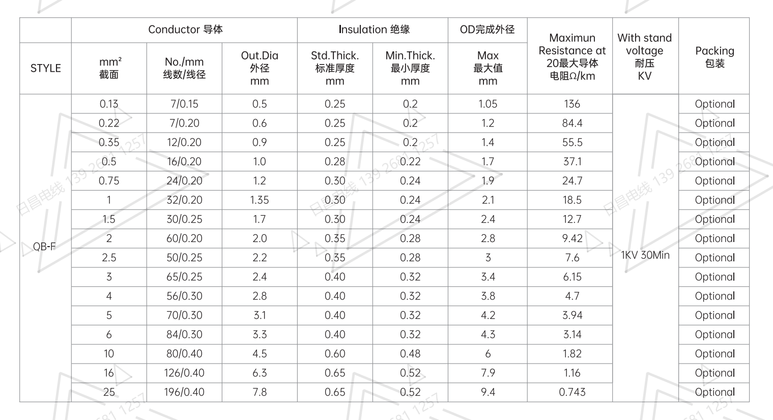 絕   緣 :聚全氟乙丙烯